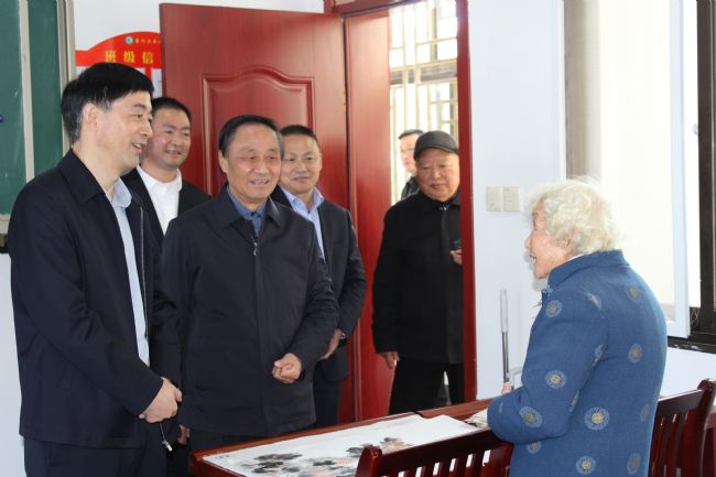 霍书记考察了我校办学成果图片展、校园环境、文化公园、教学设施、医务室、校史陈列室、演艺大厅等,听取了老年大学工作情况汇报,并深入有关班级,与老年学员进行面对面交流,了解实际教学情况。