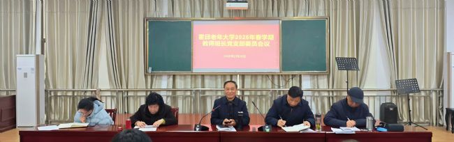 春风送暖,万象更新。2月28日,霍邱老年大学2026年春学期教师、班长、党支部委员会议顺利召开,全体教师、班长及党支部委员100余人齐聚一堂,总结过往经验,部署新学期重点任务,为学校新一年的发展谋篇布局。校长林家精、副校长吴昌瑞、潘翠珍、马有彬出席会议,会议由副校长吴昌瑞主持。